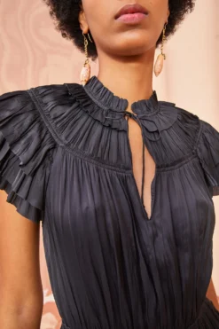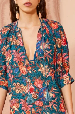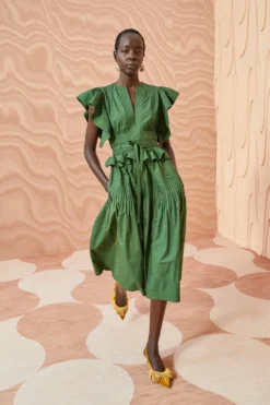 The Florence Dress is a gorgeous silhouette crafted from our best-loved water washed poplin in a rich juniper green. This midi dress features voluminous ruffles at the short sleeves and waist, hand-embroidered French knots, and lovely pintucking at the skirt. It is finished with an optional tie belt to cinch the waist and fastens with a hidden side-seam zipper.