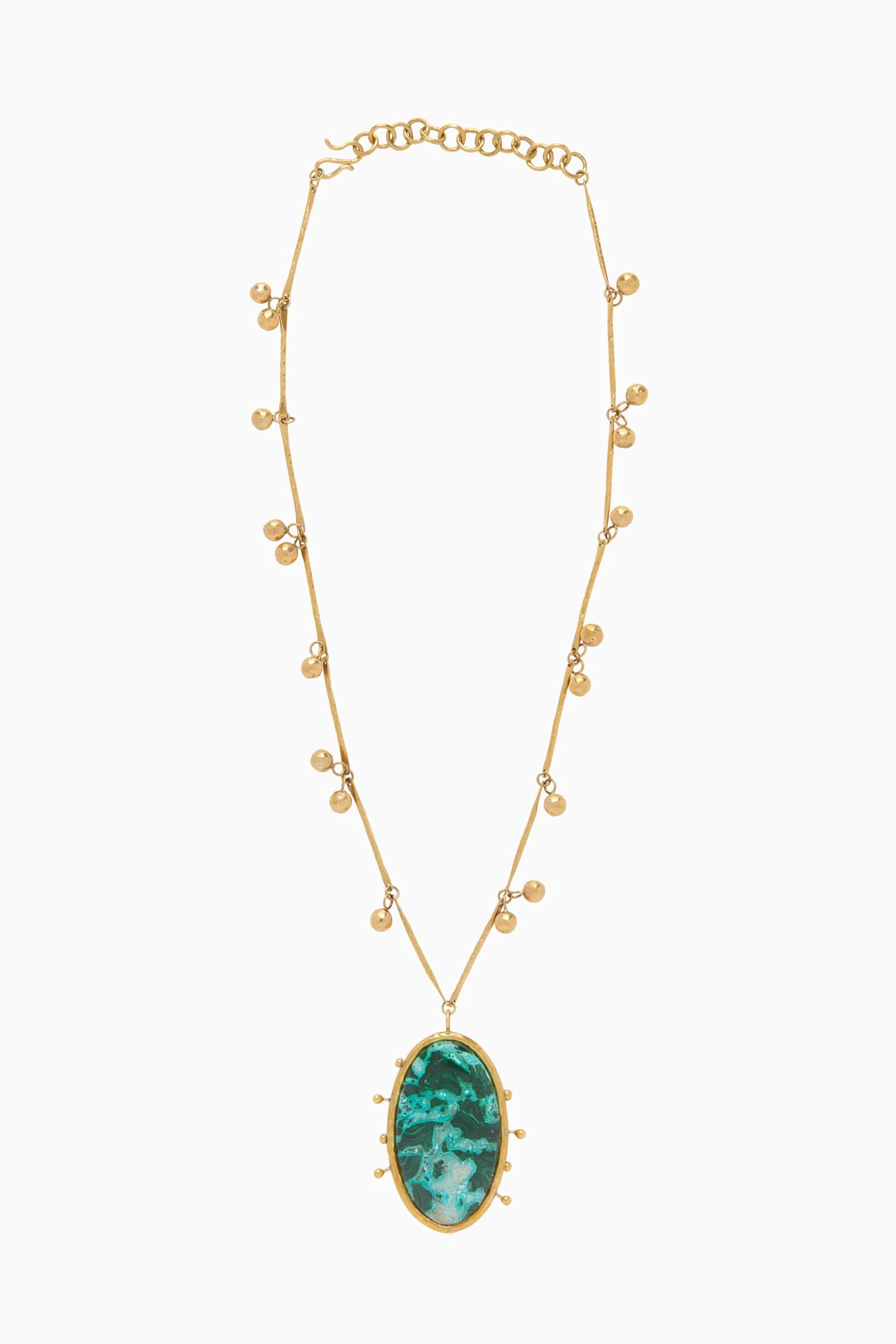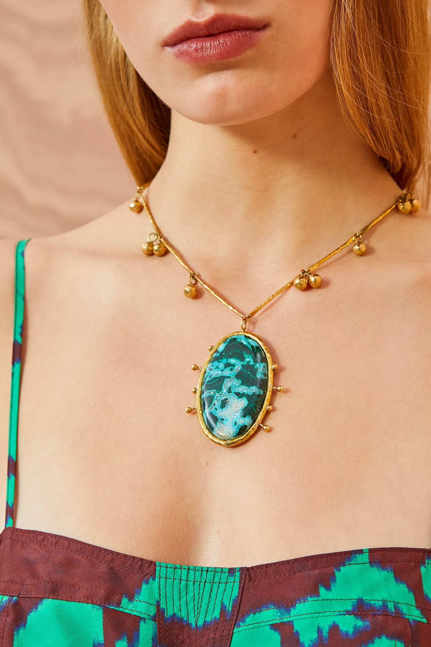 ULLA JOHNSON Hammered Chain Organic Stone Pendant – Turquoise