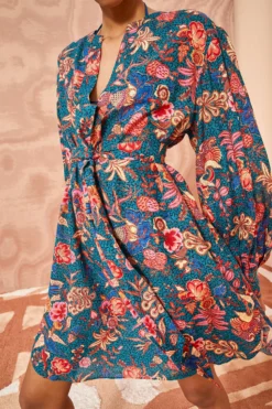 An Ulla Johnson exclusive only available in our stores or on our website, the Kaede Top is a romantic blouse, crafted from silk crinkle chiffon, a signature fabric featuring tiny gold flecks of gilded thread. Cut in a delicate peach floral print, this short-sleeve top is defined by layered cascade ruffles that beautifully trim the open neckline. It’s finished with two sets of grosgrain ribbon ties, one of which enhances the peplum-hem waist and creates a flattering shape.
